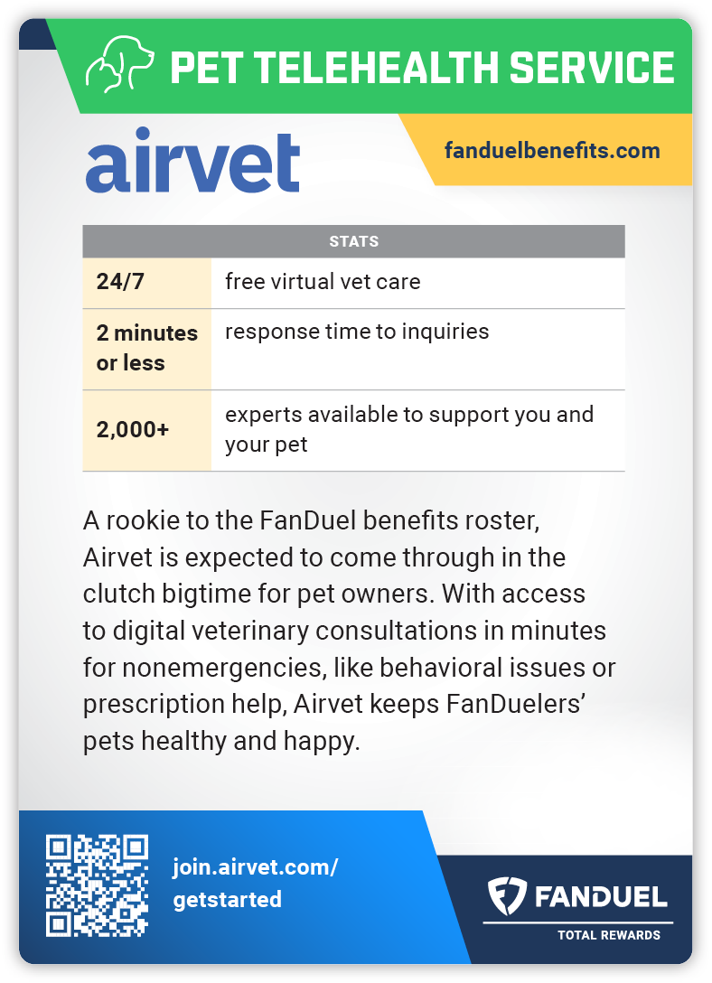 Here’s the kicker: Because FanDuel folks only deserve the best, we picked the only pet insurance offering available that allows multiple pets on the same policy. Go, team!